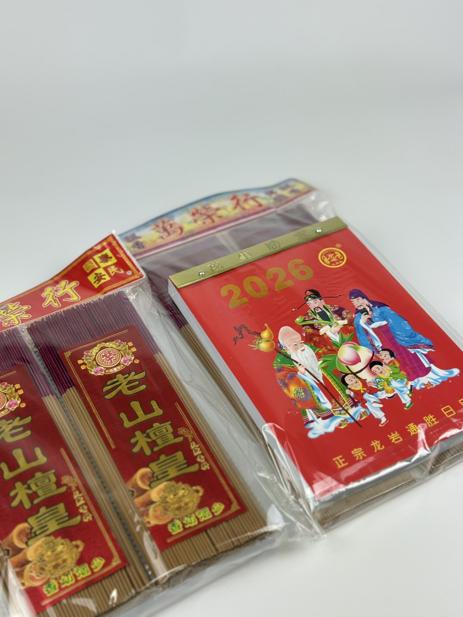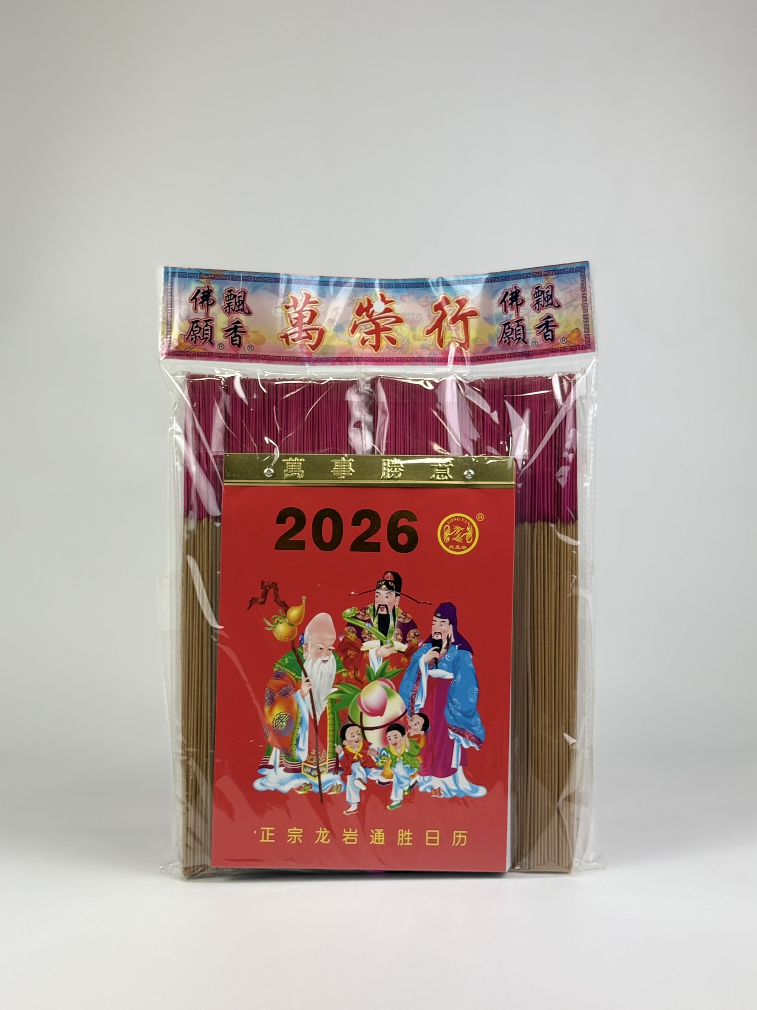 Each set includes two packets of premium joss sticks (in your preferred scent and length) plus a 2026 calendar — perfectly curated to bring calm and blessings into the new year.