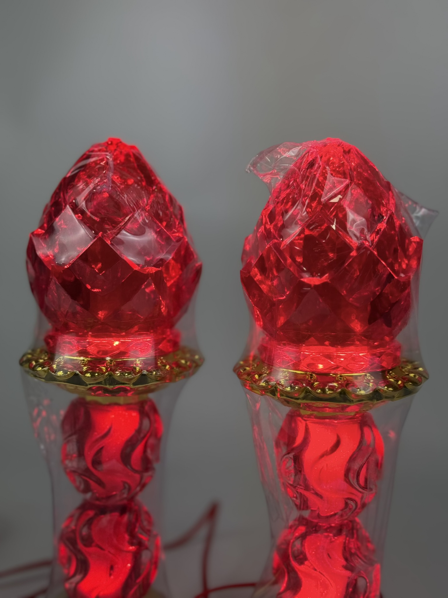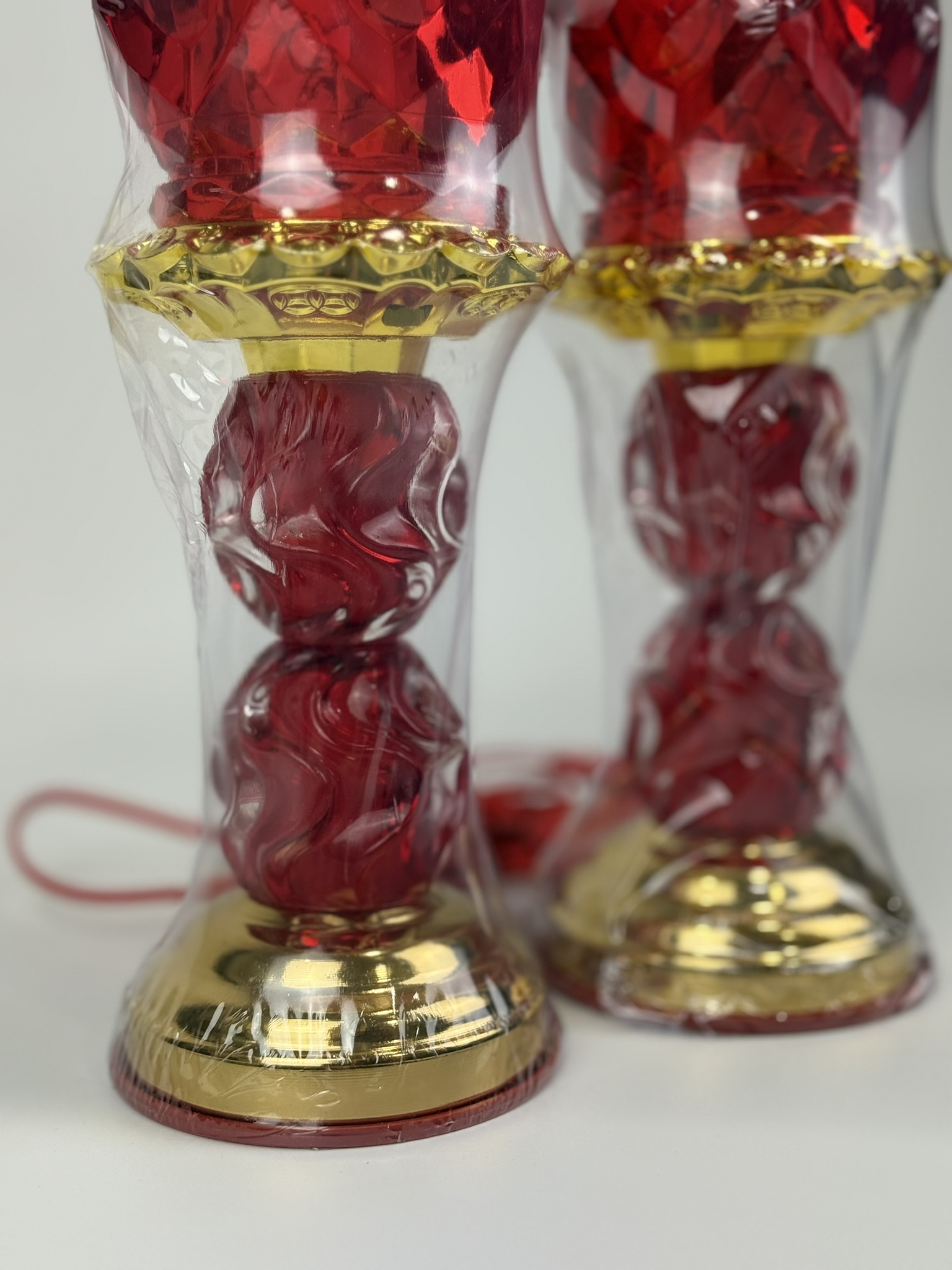 Features a red lotus-style top with a simple wavy design in the middle and a sturdy gold base — simple, elegant, and respectful for all altar setups.