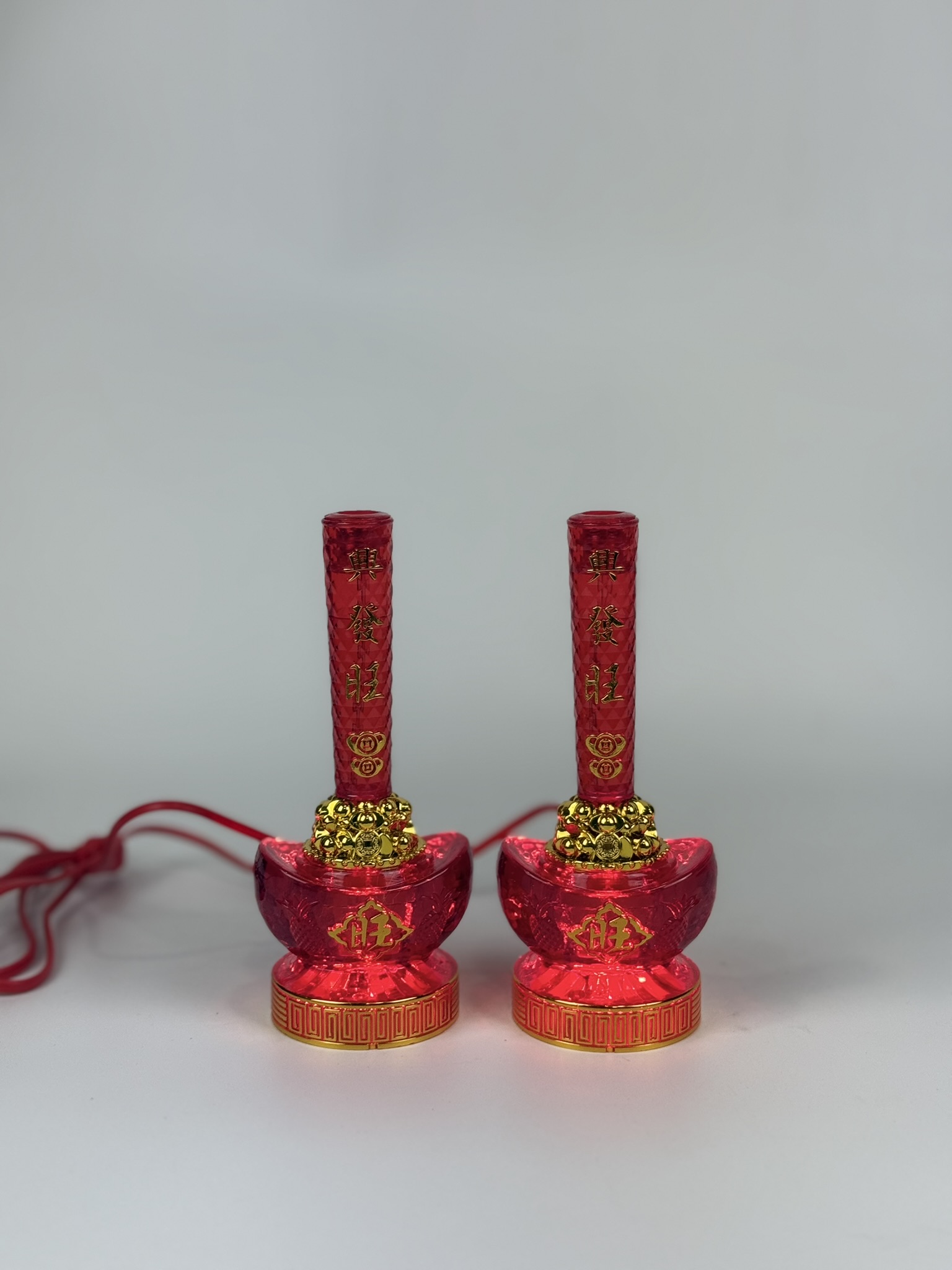Features a candle design with a ingot right in the middle and a sturdy gold base — simple, elegant, and respectful for all altar setups.