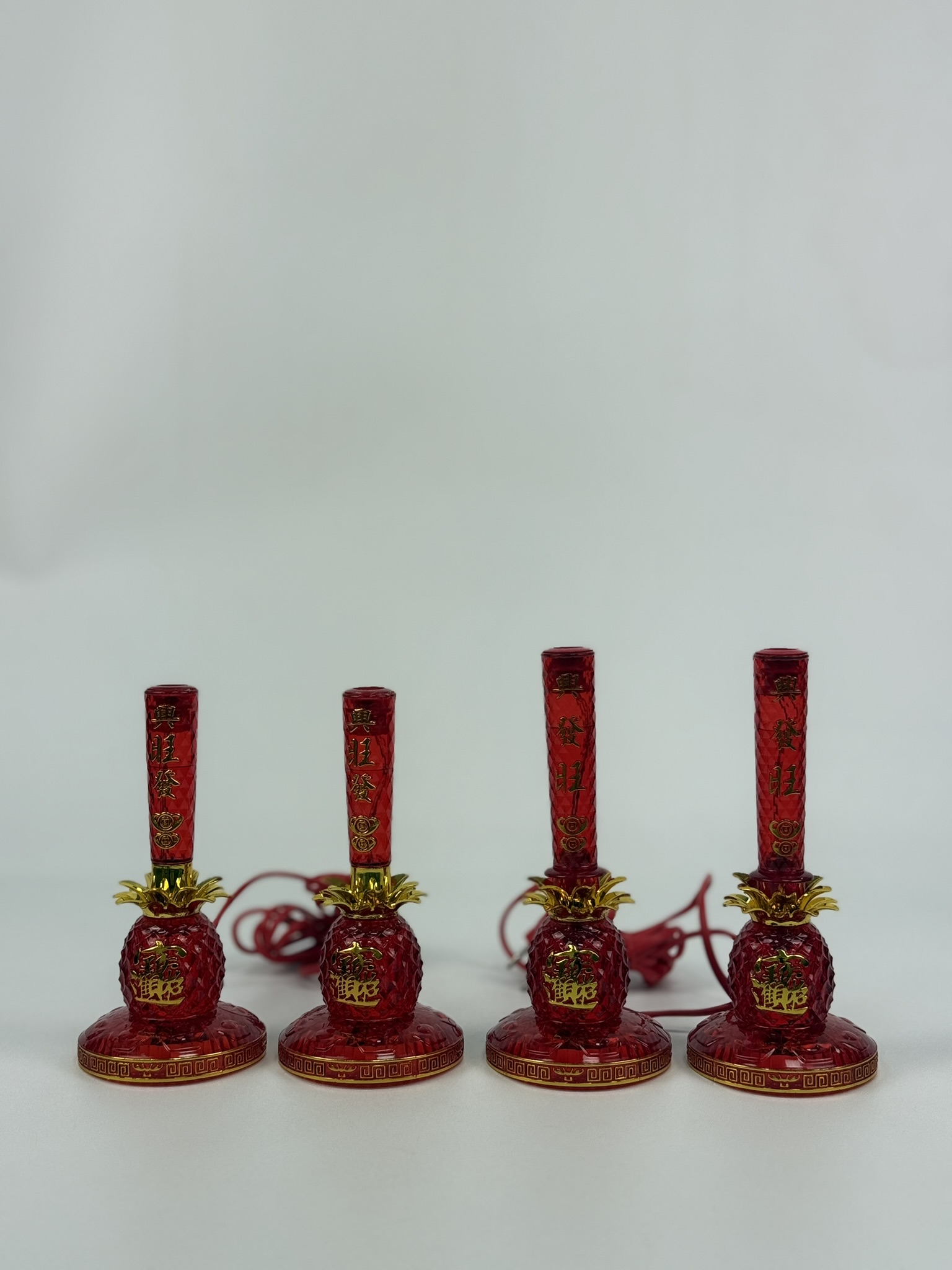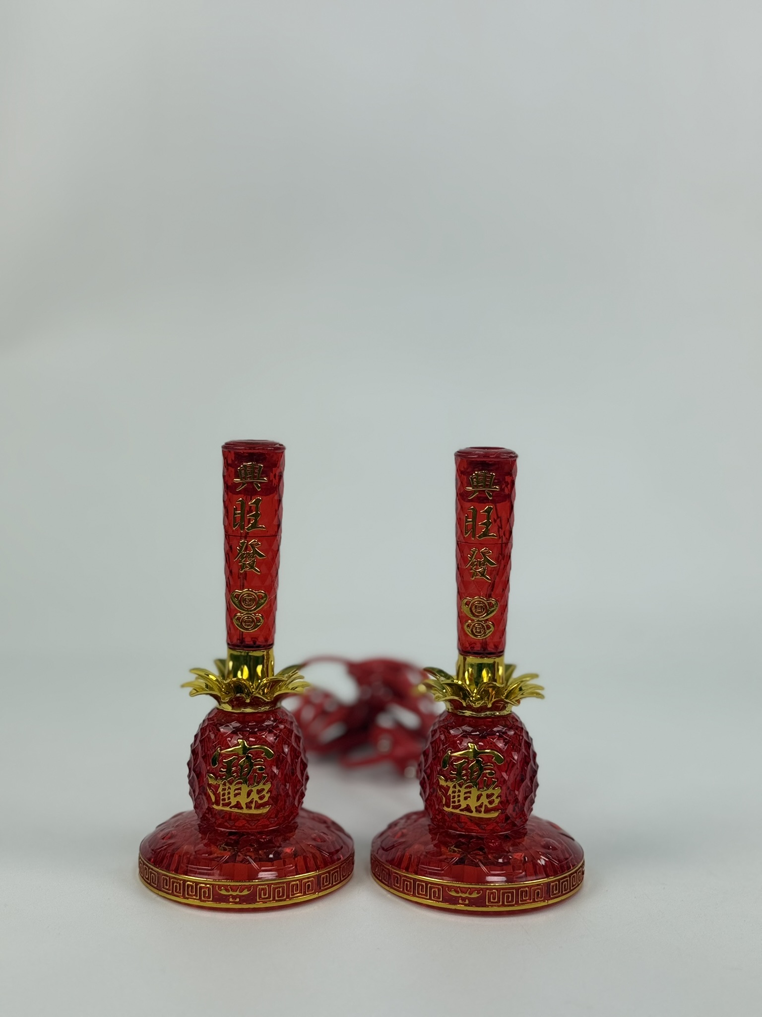Features a candle design with a pineapple right in the middle and a sturdy gold base — simple, elegant, and respectful for all altar setups.